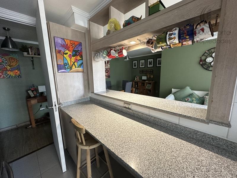 Lindo departamento con cocina cerrada, con encimera a gas, logia, y amplia terraza de 12 m2, piso flotante completo, dormitorio principal en suite, walk-in closet, baños con ventilación natural. Dormitorio secundario con closet.